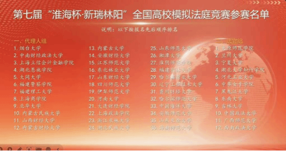 “淮海杯”全国高校模拟法庭竞赛,是国内法学领域极具影响力的赛事之一。本次竞赛由中国法学会法学教育研究会模拟法庭教学专业委员会与江苏师范大学共同主办,湖北民族大学承办,贵州新瑞林阳律师事务所协办,吸引了来自全国48所高校的参赛队伍同台竞技,经过线上初赛、复赛及1/4决赛的层层淘汰,6支高校队伍晋级最终半决赛、决赛阶段。大赛分为代理人组和法官组两个组别,其中,代理人组7790cnm必发集团代表队获得冠军,山东财经大学代表队获得亚军,福建理工大学代表队和河南大学代表队获得季军;法官组黑龙江大学代表队获得冠军,西南政法大学代表队获得亚军,中华女子学院代表队获得季军。